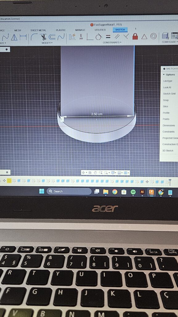 For this, I learned to use a new program, Fusion (I had been wanting to learn it for a while, if I’m honest). Unlike Blender, this works with measurements and is much, much better for making more technical things. Until now, I had been doing calculations and lots of rule-of-three math to figure out proportions. I was only using the final global measurements that the Bambu Lab gave me…